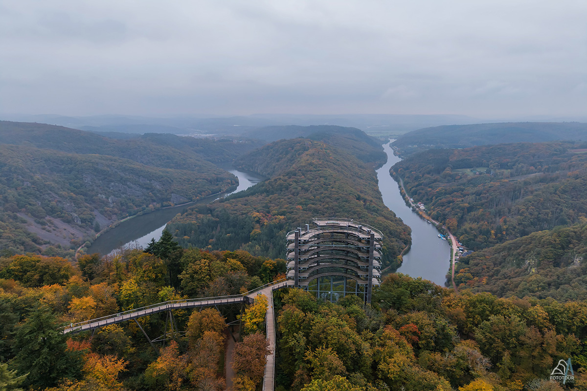 Um die Saarschleife spannend zu zeigen, frage ich entsprechende Drohnenfreigaben an, um den Ort aus der Luft filmen zu können. Direkt über der Saarschleife liegt ein Naturschutzgebiet. Der Abschnitt davor ist jedoch ebenfalls interessant, mit Blick auf den Baumwipfelpfad und die Hänge vor der Flussschleife. Ich bekomme eine Freigabe für den Baumwipfelpfad Saarschleife und mache mich auf den Weg.