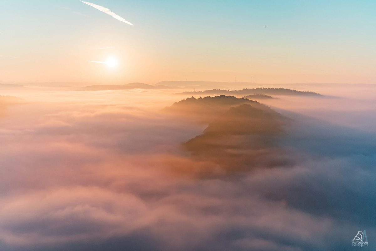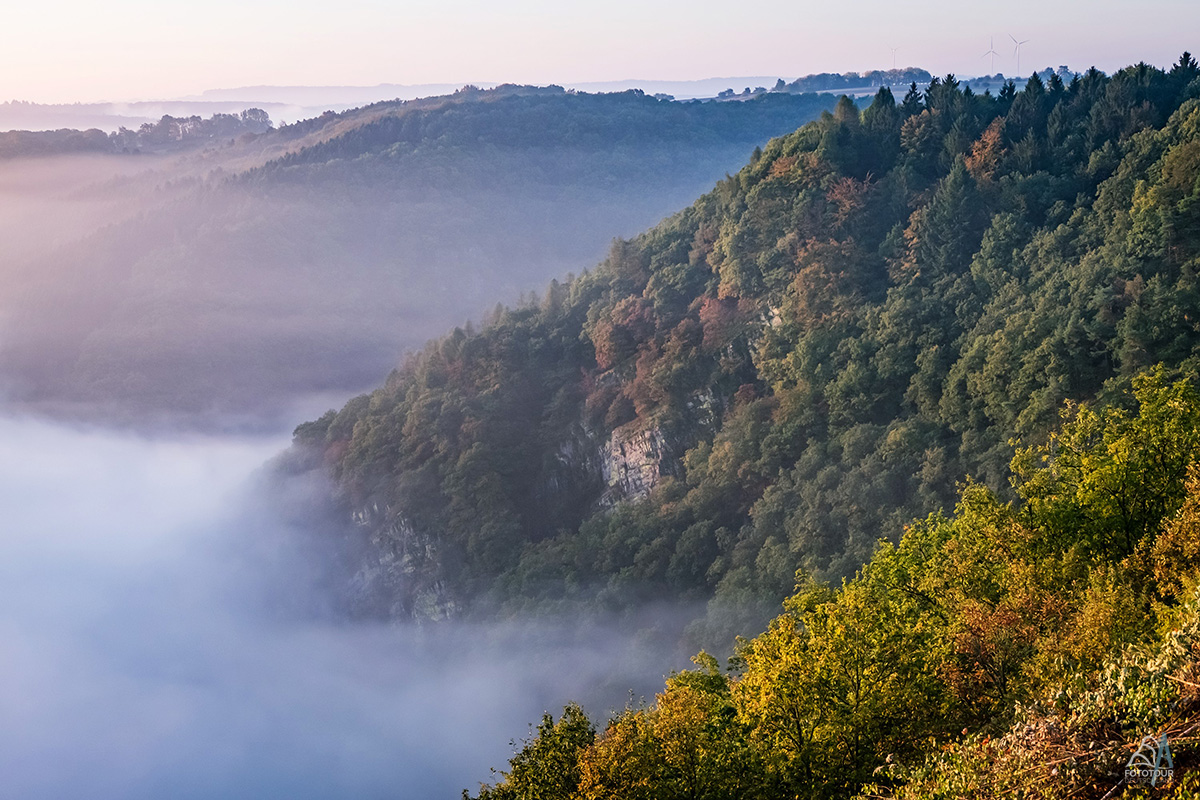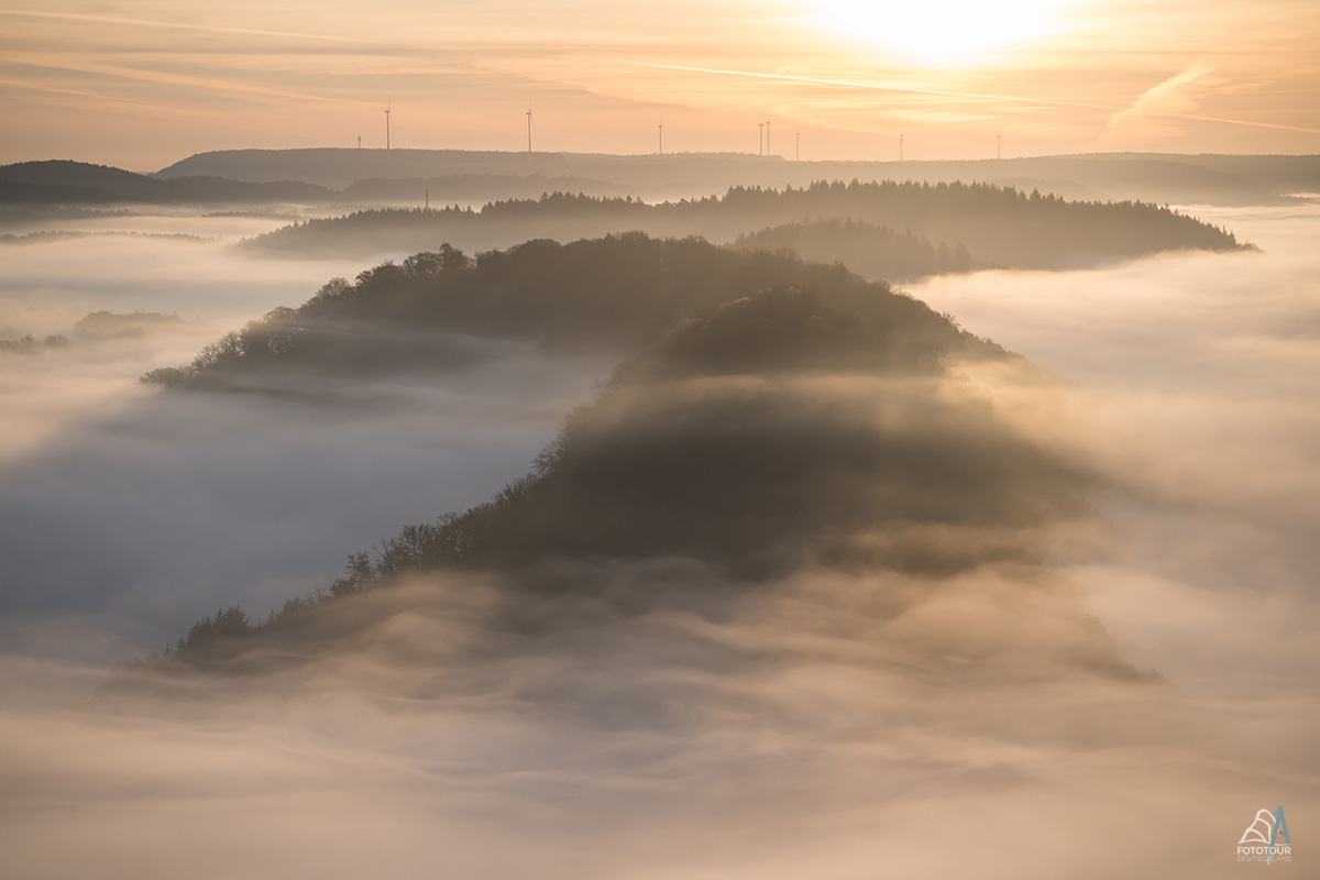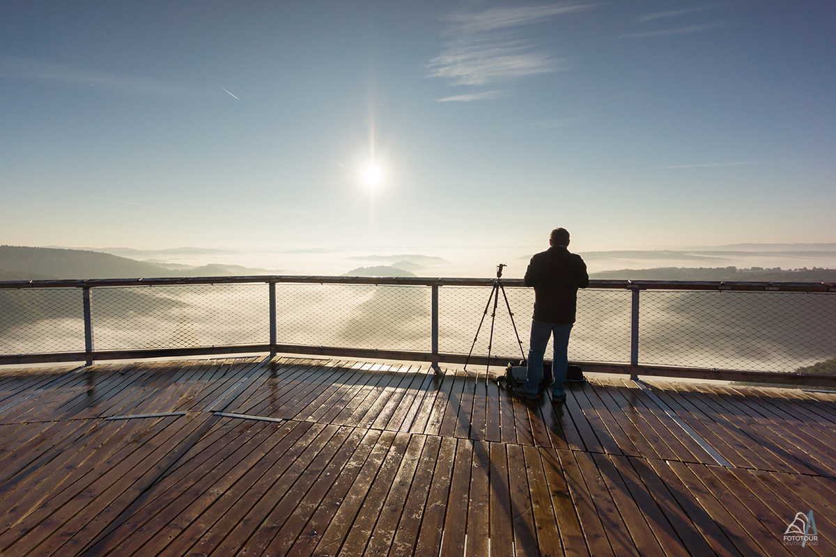 Zudem geht der Ausblick Richtung Osten: Die Sonne geht über der Saarschleife auf. Häufig entstehen hier schöne Nebelstimmungen mit der Sonne über dem Nebelmeer.