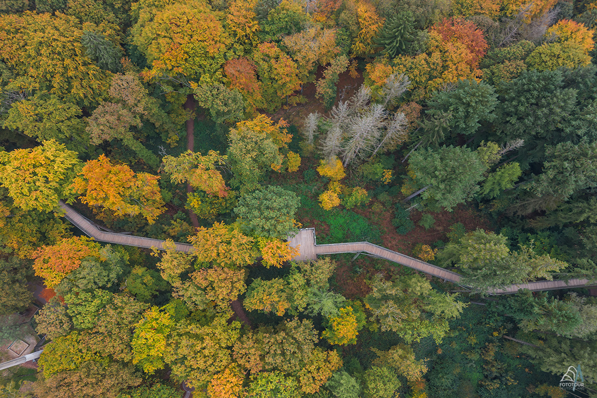 Direkt hinter dem Cloef-Atrium befindet sich der Eingang und die Kasse des Baumwipfelpfads. Dieser schlängelt sich über 1.200 Meter zwischen den Bäumen hoch zum Aussichtsturm. Ich war im Herbst dort zu Besuch, zwischen Nebelschwaden und Bäumen, und war begeistert. Am Ende erreicht man den Aussichtsturm – der Ausblick ist grandios. Der Besuch ist auch mit Kinderwagen und Rollstuhl möglich, nur Hunde dürfen (außer Assistenzhunden) nicht mit.